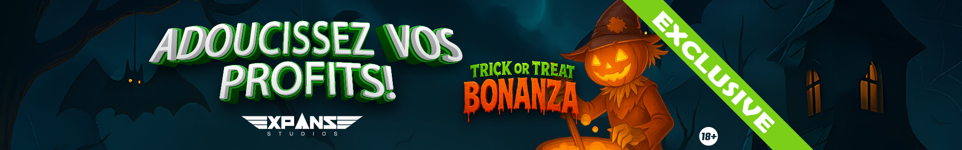 Plongez dans l'univers hanté des bonbons de Trick or Treat Bonanza, la machine à sous vidéo 5×6 ultime, revisitée pour la saison la plus effrayante de l'année ! Des friandises macabres, des bonbons effrayants et des bonbons gélifiés remplissent les rouleaux, vous offrant une expérience glaçante et amusante dans votre aventure sucrée préférée.